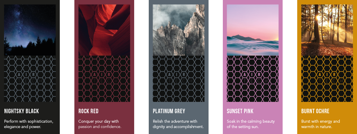 AirTech is available in five colours inspired by nature